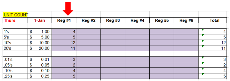 2b. Fill in the Unit Count fields – the # of bills of each denomination.